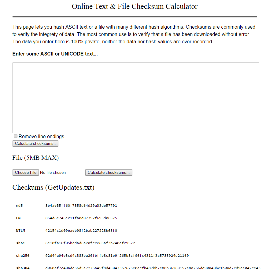 Online Text and File Checksum Verifier