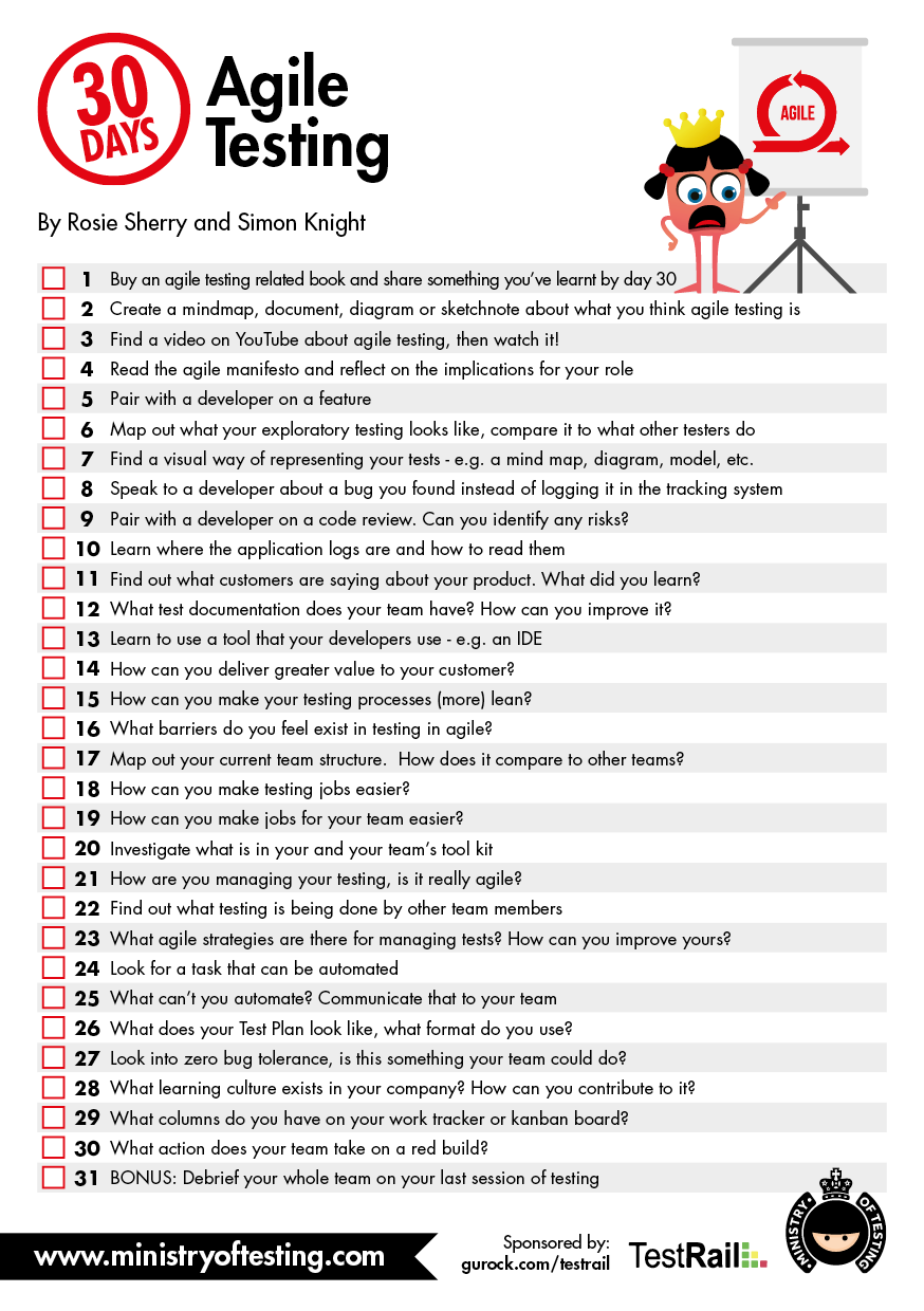 - Share your progress with the hashtag #30daysoftesting on any social media site.