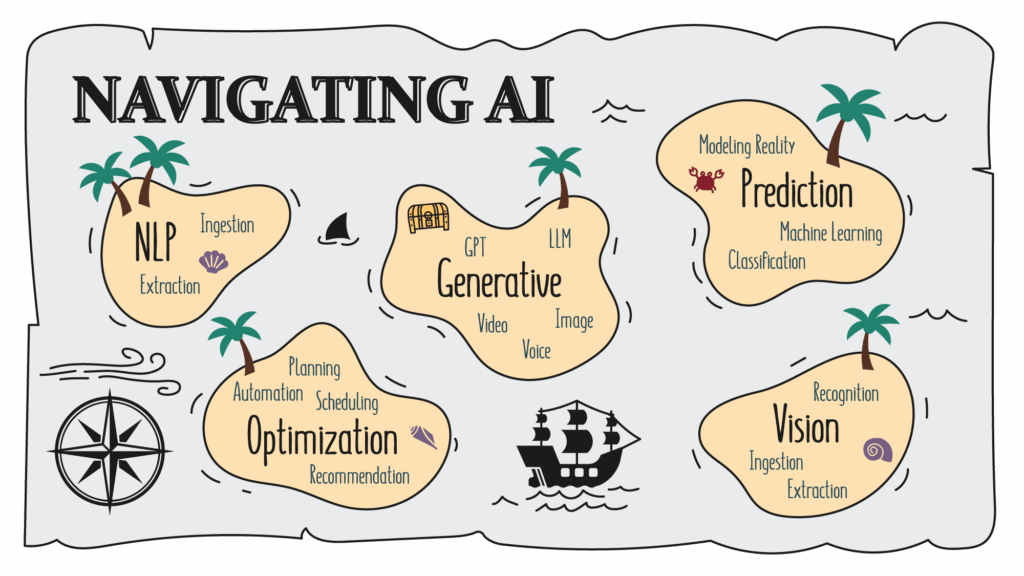 This mapping gives us a shared language for talking about real-world needs and technical possibilities. A more complete mapping of verbs that provide a hint that AI might be waiting in the wings is provided below:
