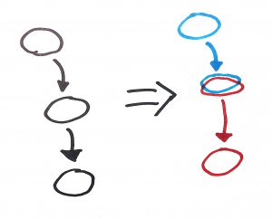 The initial diagrams we dealt with only had a single initial blob and a single final blob with one arrow connecting the two (like the one on the left). This is an ideal situation to start with because it allows you to explore a lot of aspects that can make a problem difficult on an individual aspect by aspect basis.