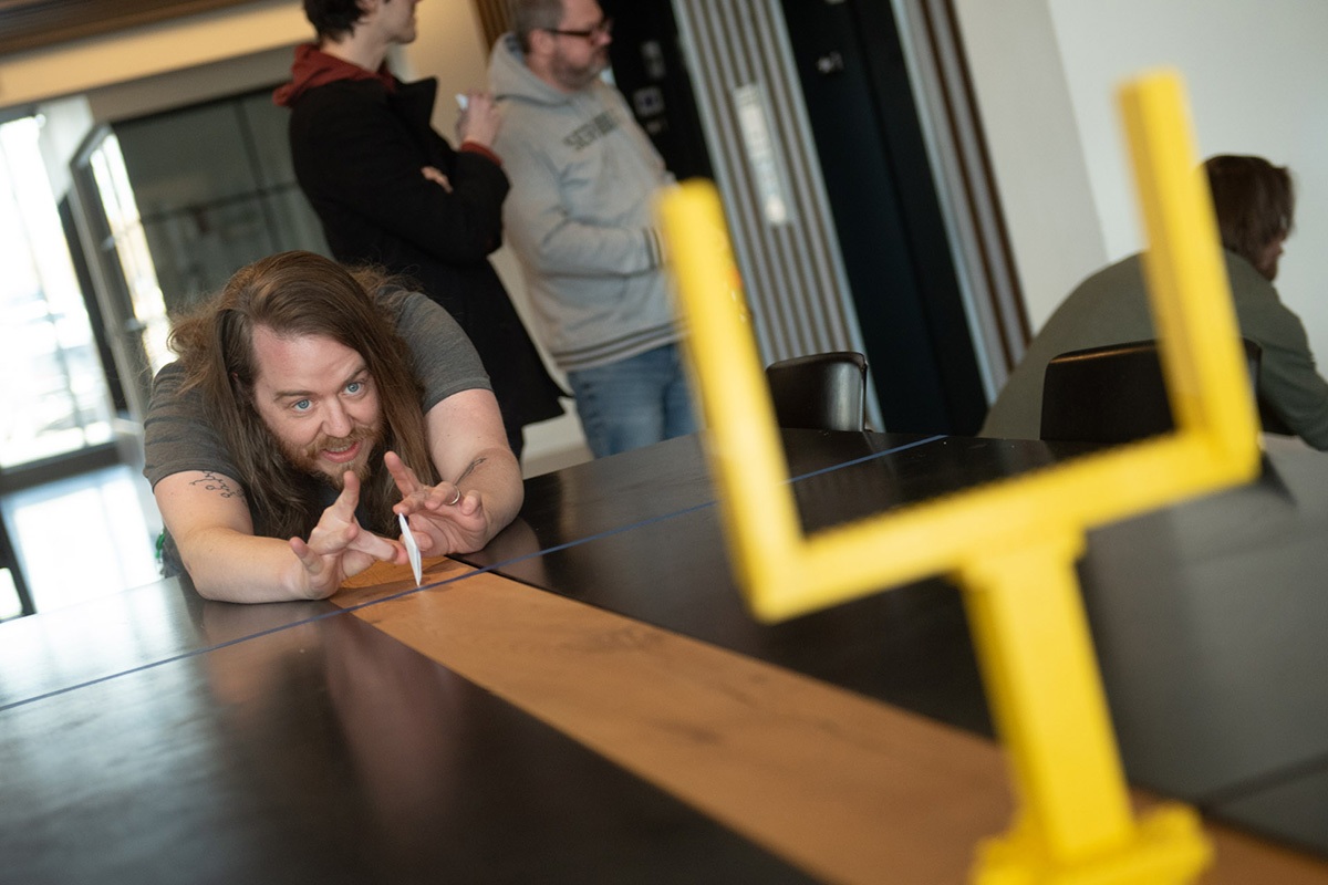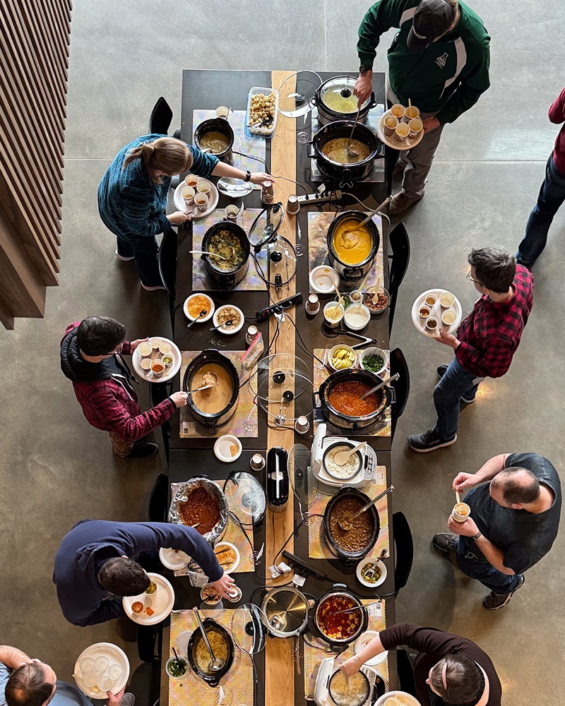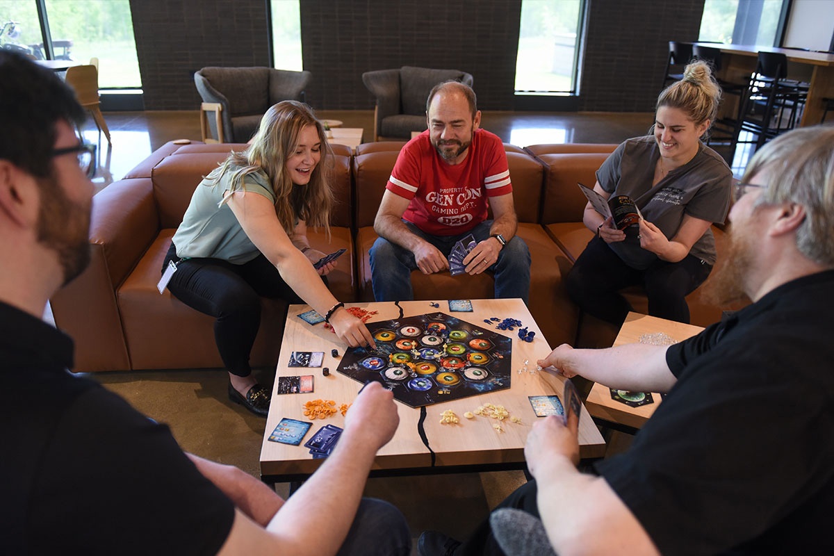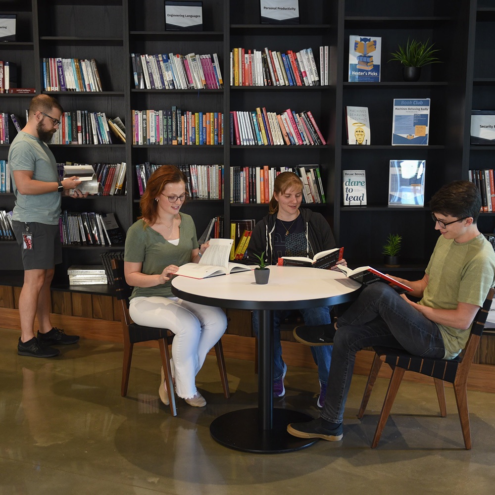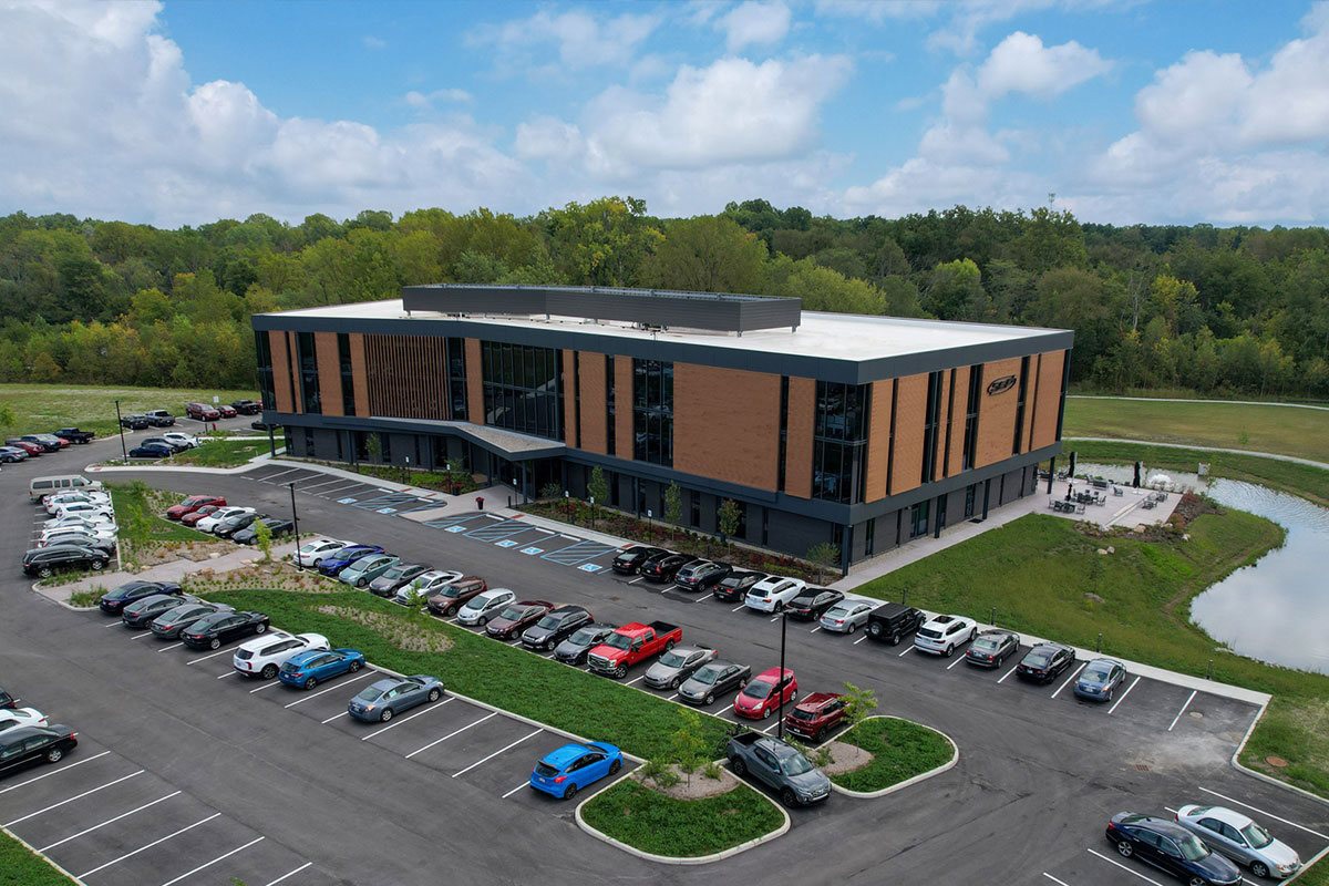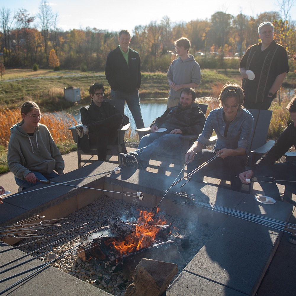 In 2021, we built our new headquarters in Westfield, Indiana—a space we designed for creativity, comfort, and connection. The building includes a makerspace, fitness center, quiet meeting booths, and an outdoor patio with a fire pit.